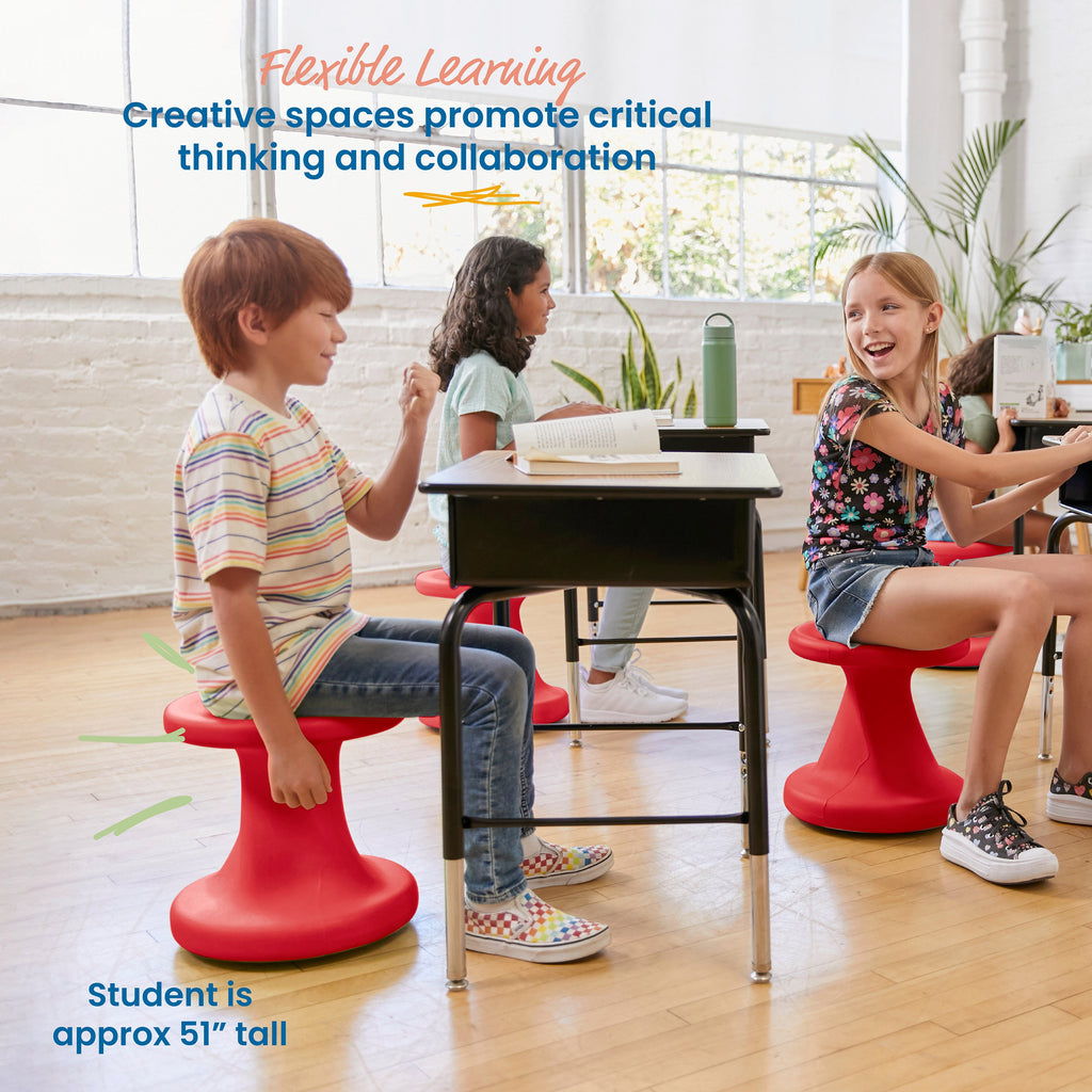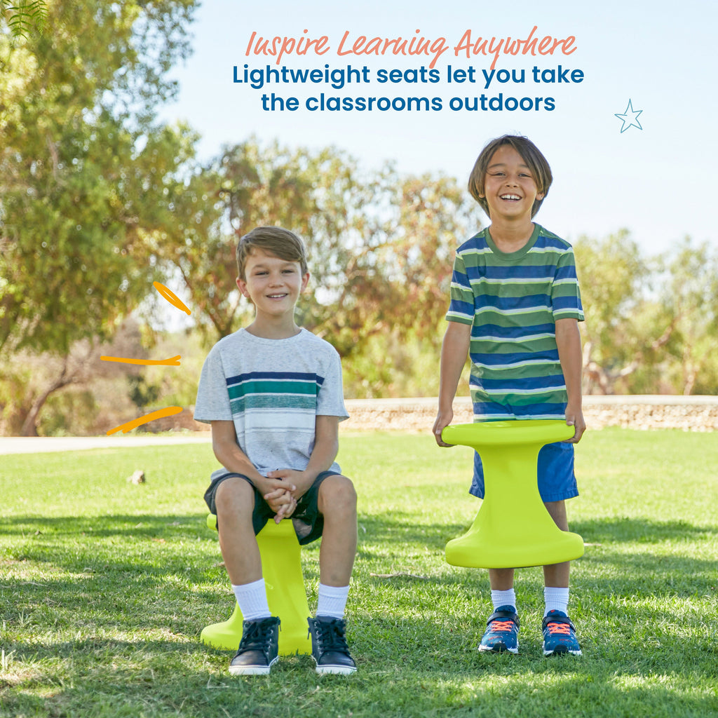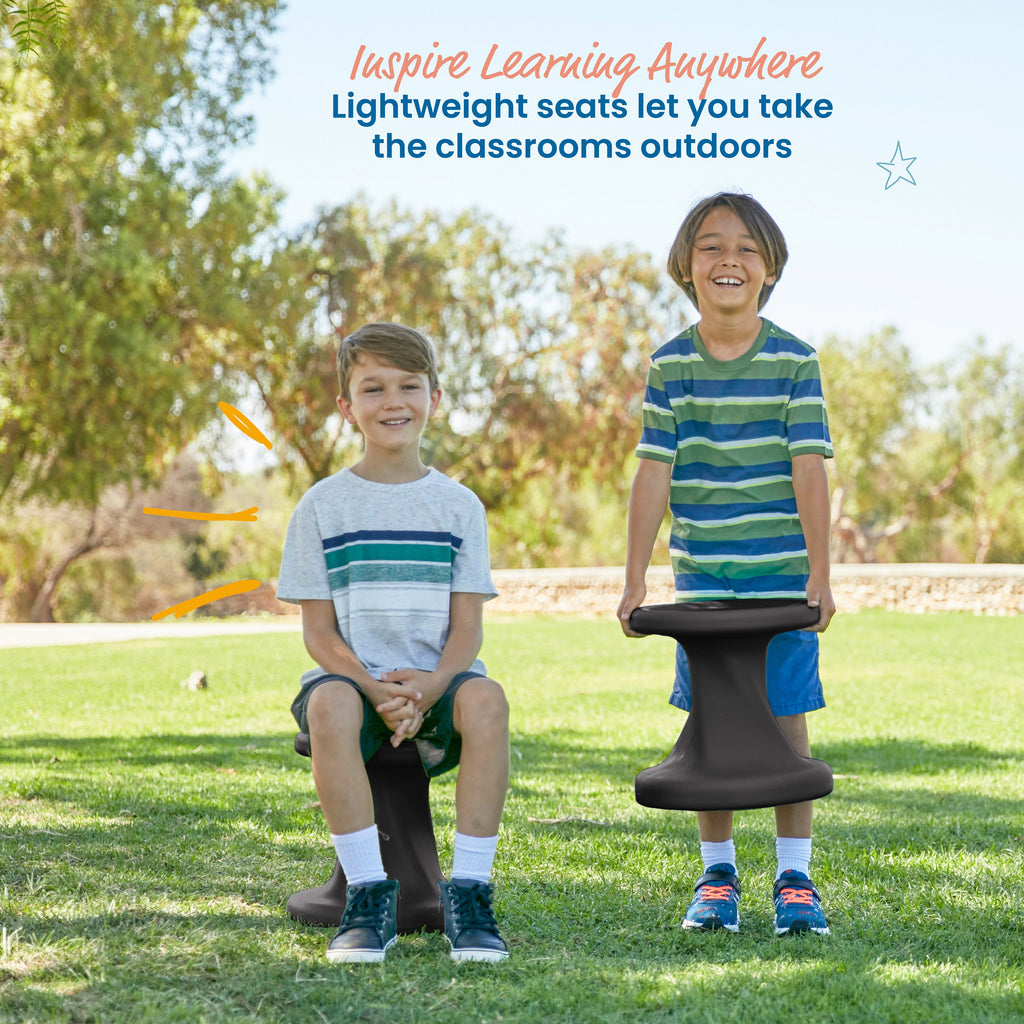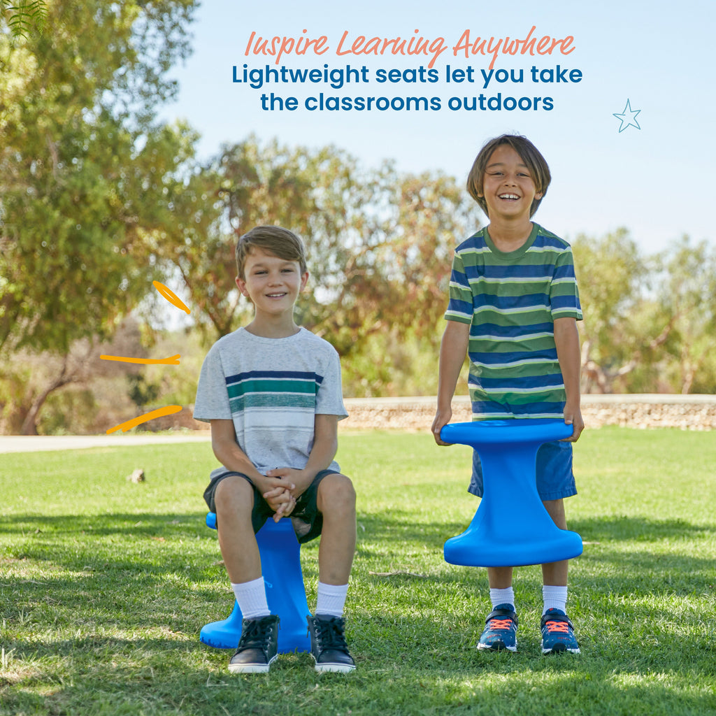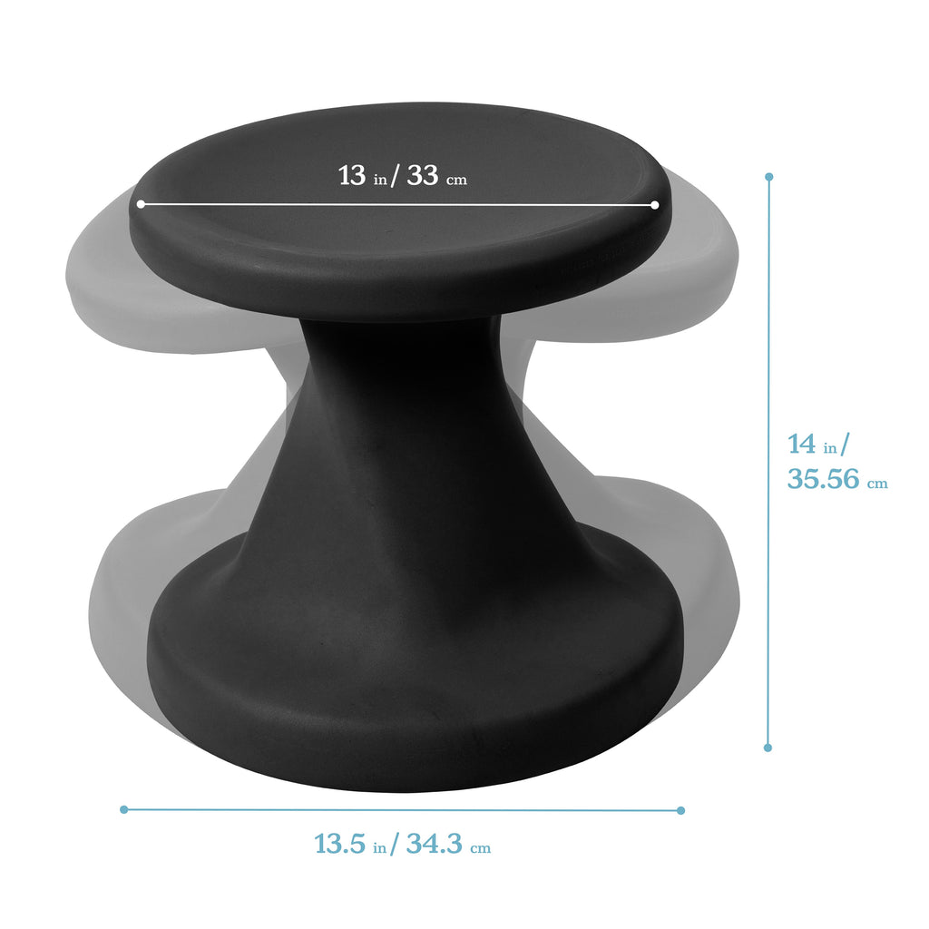 The Twist Stool is a fun flexible seating option that allows users to move and sway while they work. Seats that rock, tilt, and swivel encourage good posture and alertness, and the rounded convex base allows for freedom of movement. Designed for everyday use in schools, homes or offices, these functional and colorful stools are a fun way to provide extra seating in any learning space. Seats make it easy for students to circle up for discussions or pair with activity tables for individual and collaborative work. Wobble seats helps sustain attention and focus by creating an outlet for fidgeting. Continuous small movements increase blood flow to the body and brain aiding concentration without distracting others nearby. Active seating is ideal for individuals who have restlessness, ADHD, ASD, or sensory sensitivities. The lightweight and adaptable seat is the perfect grab-and-go stool for taking the classroom indoors and out. Quickly and easily rearrange workspaces to create a dynamic collaborative environment between students or use for individual work study. This wobble stool features a latex-free rubberized base that helps keep the seat in place on hard or carpeted surfaces, and a perimeter safety ring that creates a natural stop.