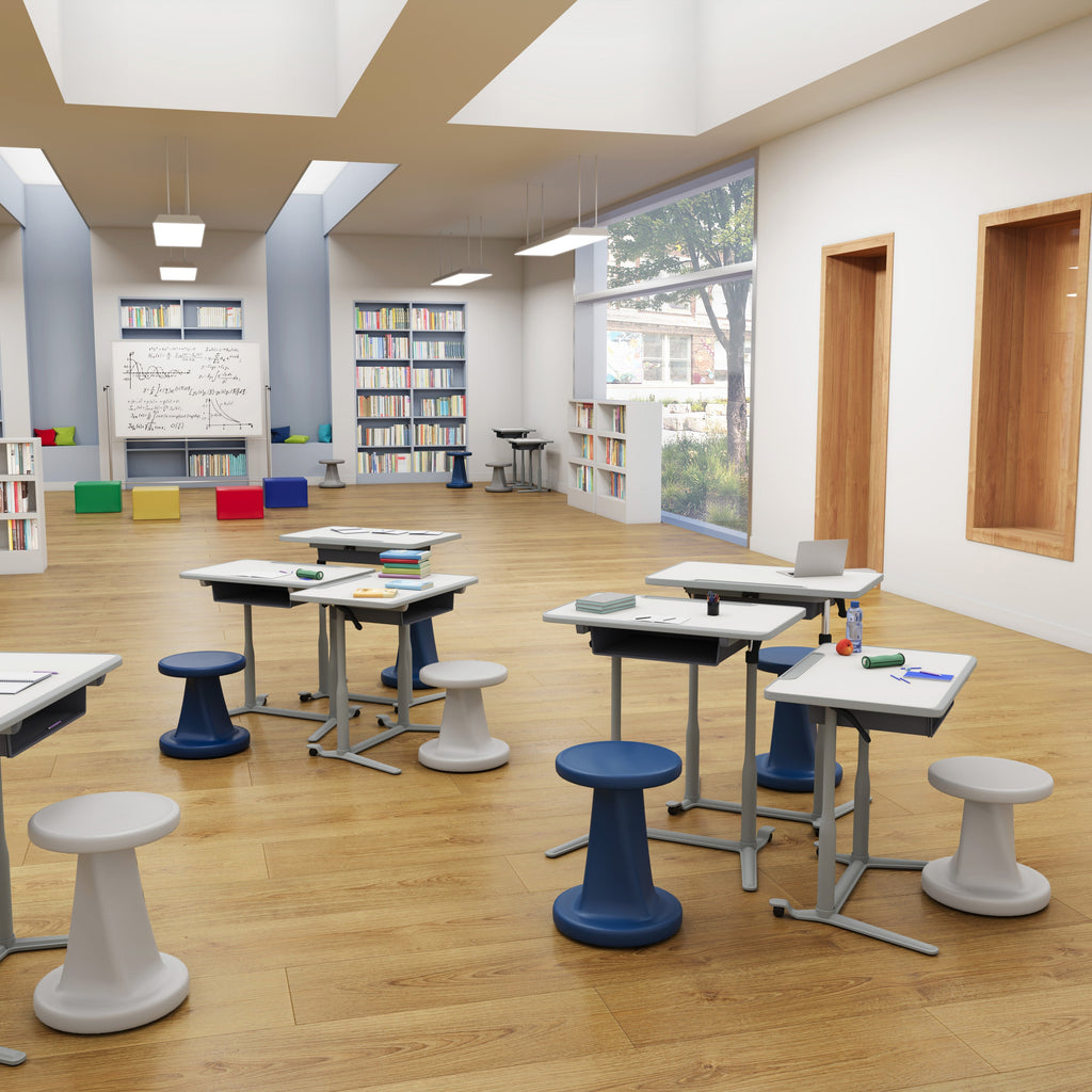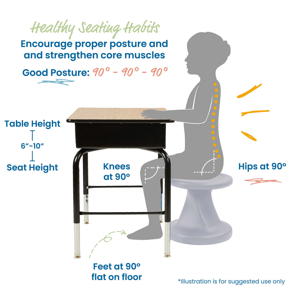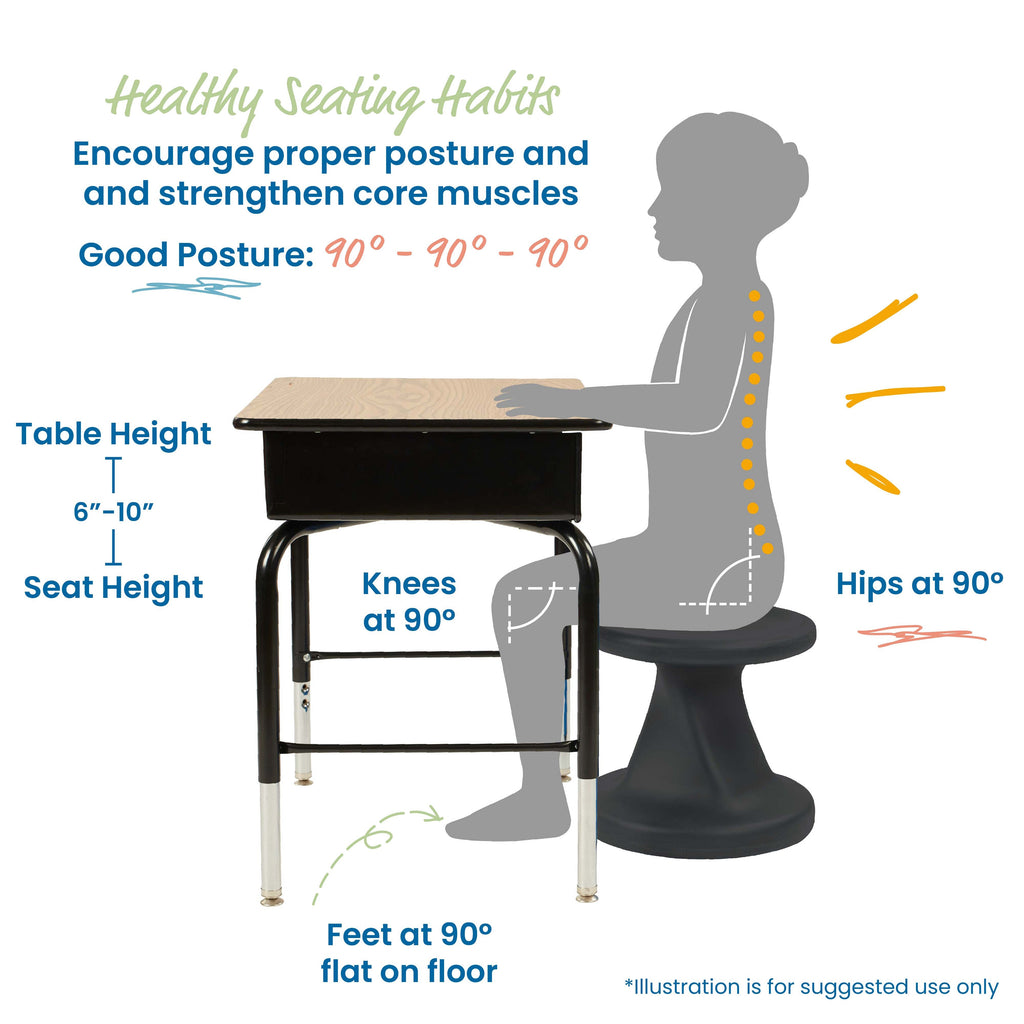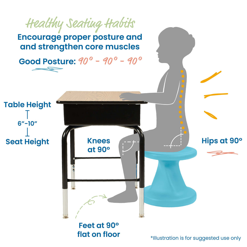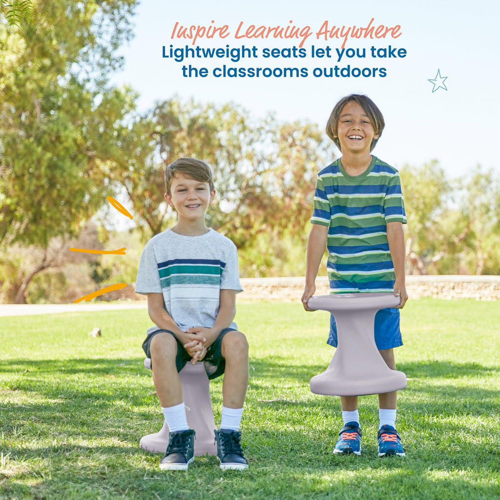 The Twist Stool is a fun flexible seating option that allows users to move and sway while they work. Seats that rock, tilt, and swivel encourage good posture and alertness, and the rounded convex base allows for freedom of movement. Designed for everyday use in schools, homes or offices, these functional and colorful stools are a fun way to provide extra seating in any learning space. Seats make it easy for students to circle up for discussions or pair with activity tables for individual and collaborative work. Wobble seats helps sustain attention and focus by creating an outlet for fidgeting. Continuous small movements increase blood flow to the body and brain aiding concentration without distracting others nearby. Active seating is ideal for individuals who have restlessness, ADHD, ASD, or sensory sensitivities. The lightweight and adaptable seat is the perfect grab-and-go stool for taking the classroom indoors and out. Quickly and easily rearrange workspaces to create a dynamic collaborative environment between students or use for individual work study. This wobble stool features a latex-free rubberized base that helps keep the seat in place on hard or carpeted surfaces, and a perimeter safety ring that creates a natural stop.