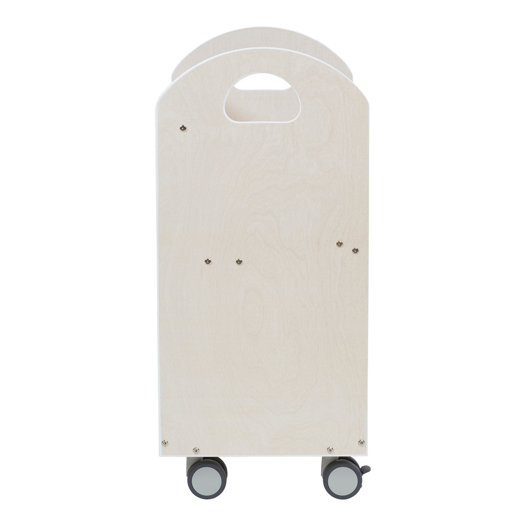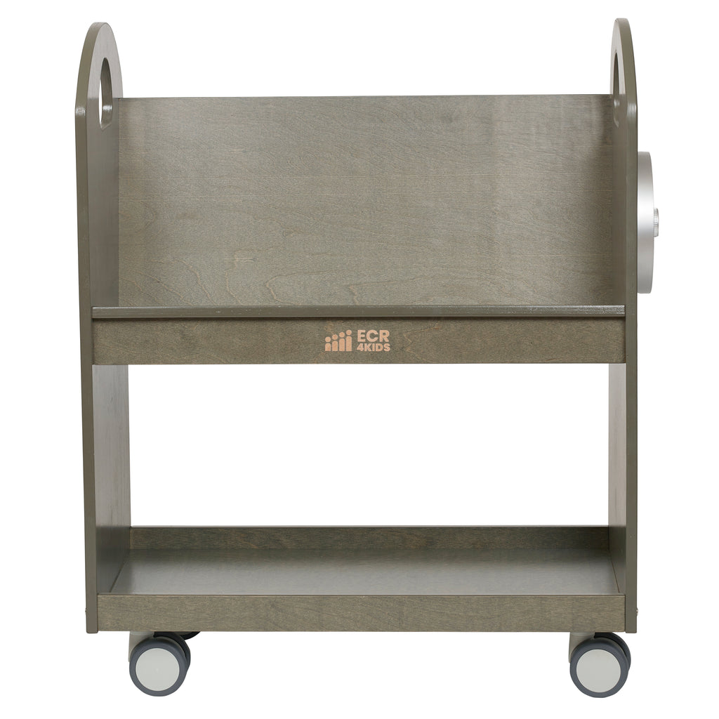 Cultivate a love for reading with ECR4Kids Birch Mobile Book Cart with Countdown Timer. The rolling book storage helps to introduce literacy at a young age from nurseries, to playrooms, or in the classroom. Designed to grow with your little one, this bookshelf helps parents, teachers and educators stay organized and keep books within reach. The low-profile slanted shelf encourages children to choose their own stories independently and confidently, and clean up when story time is over. A removable countdown clock visually illustrates the concept of time for children to develop self-regulation and support smooth transitions. The size of the timer works well for a variety of home activities including reading, homework or even cooking in the kitchen, and is big enough for large groups in school. The magnetic clock can be mounted to the cart or used as a standalone timer with the included footrest. The classroom bookshelf features cutout handles and four dual-locking casters for transportation between rooms. There is an additional storage shelf below to organize puzzles, toys and more. Constructed from sustainably harvested birch plywood with a durable finish sealing the wood surface and resisting scratching. A UV inhibitor helps furniture resist ultraviolet light and yellowing.